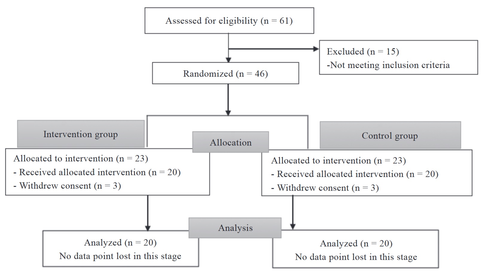The study was conducted in accordance with the CONSORT guidelines. 26,27 A total of 46 patients were randomized. Six people were excluded because they withdrew consent. Of the remaining 40 patients, 20 had been allocated to the propofol group (intervention group) and 20 to the sevoflurane group (control group). The flow diagram is shown in Figure 1. The characteristics of the two groups were similar (Table 1). No significant differences were seen between groups in any of the preoperative and intraoperative patient characteristics.