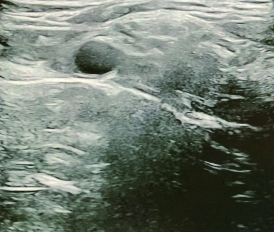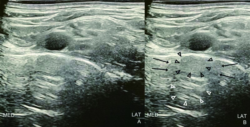 This patient underwent first rib resection for thoracic outlet syndrome and thus had the sonographic view described above. Supraclavicular brachial plexus sonography may look straightforward, but recognition of common artifacts can prevent inadvertent catastrophe.